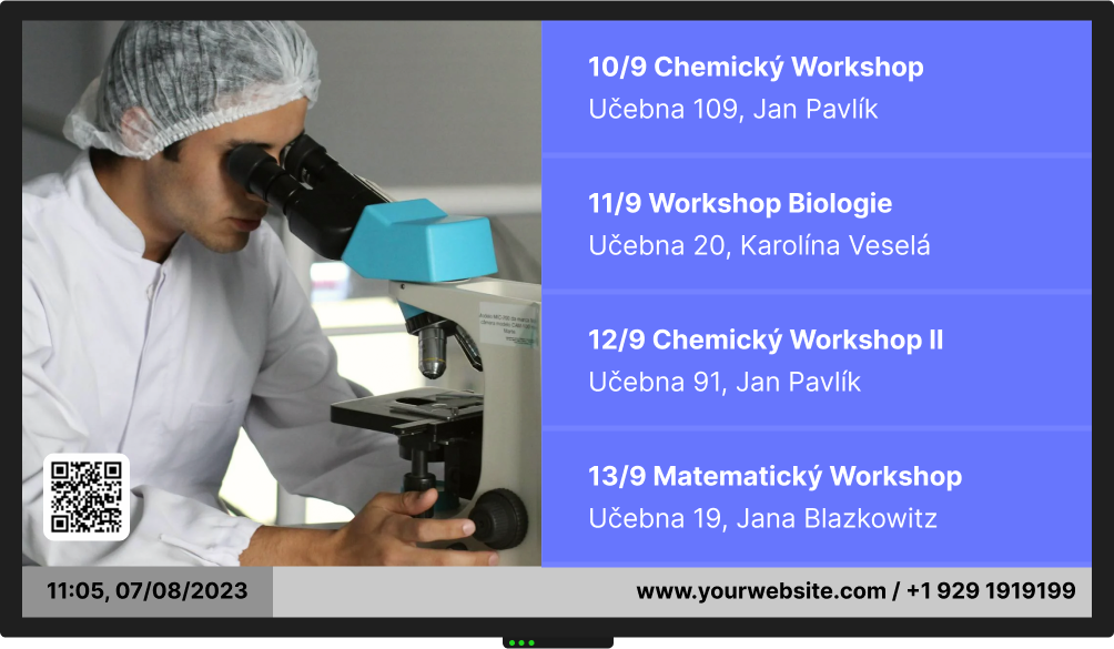 Dynamicky zapojte své studenty prostřednictvím interaktivních displejů, obohaťte výukové prostředí a zefektivněte komunikaci ve školách. Proměňte učebny a kampusy v moderní digitální centrum inovací a interakce.